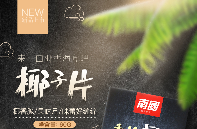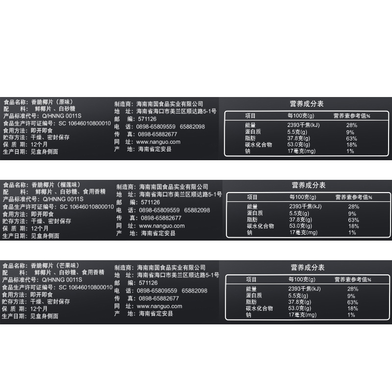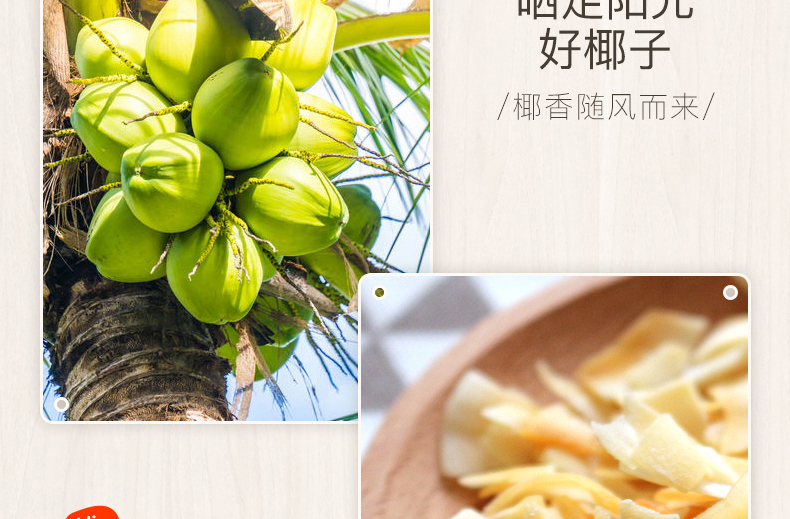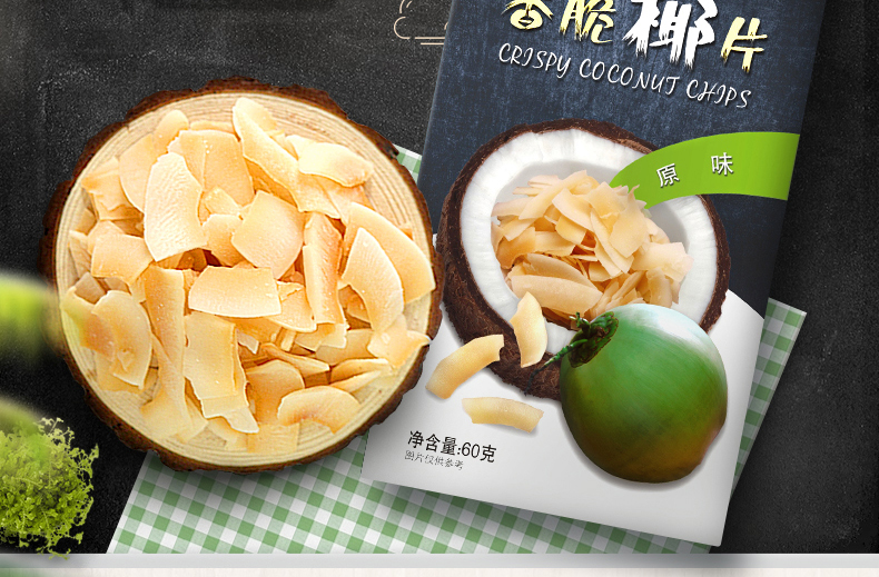 海南特产南国香脆椰片原味60g碳烤椰肉果干椰子片休闲零食