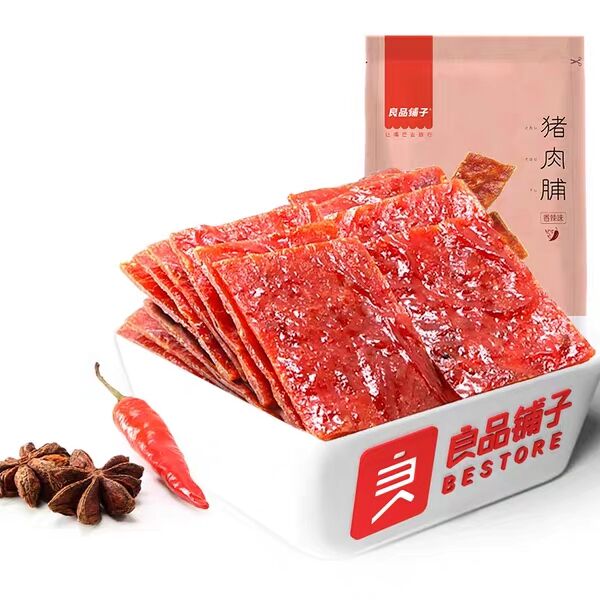 本产品的猪肉脯是江苏靖江地方特色食品,有70余年历史。产品延用传统竹筛工艺生产,原料选用猪后腿肉切片,特色鱼露腌制,拒绝加入淀粉,因此口感较之前同款猪肉脯加入淀粉的会有所优化,猪肉采用人工在竹筛上铺成薄片烤制,因成品水分含量低,肉质纹理分明,滋味鲜美、醇厚,富有咀嚼感,故而越嚼越香。