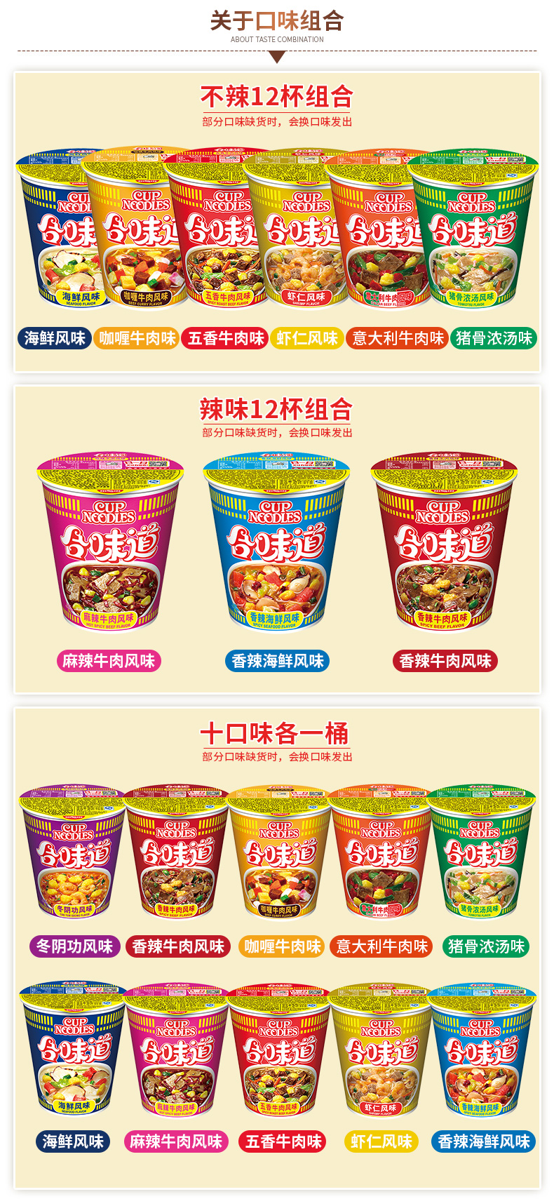 日清合味道杯面12杯方便面整箱装开杯乐夜宵速食食品即食泡面桶装