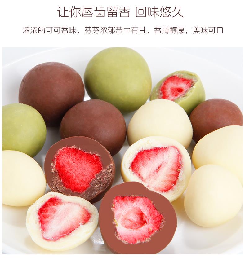 多种口味可供选择,牛奶味、巧克力味、抹茶味。整粒草莓哟,浓香醇厚的巧克力,视觉与味觉的双重享受。