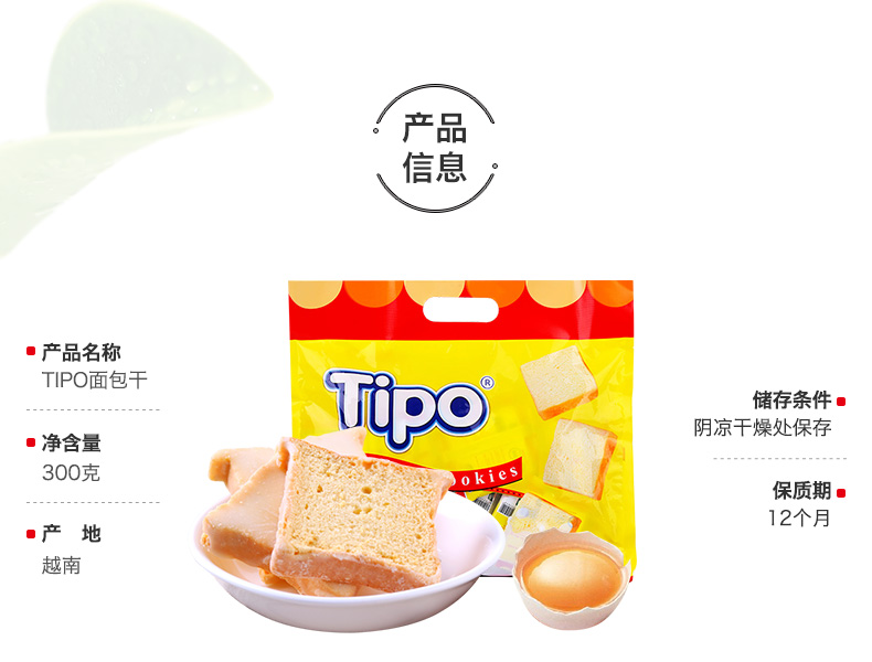 品 名:Tipo面包干鸡蛋牛奶味300g