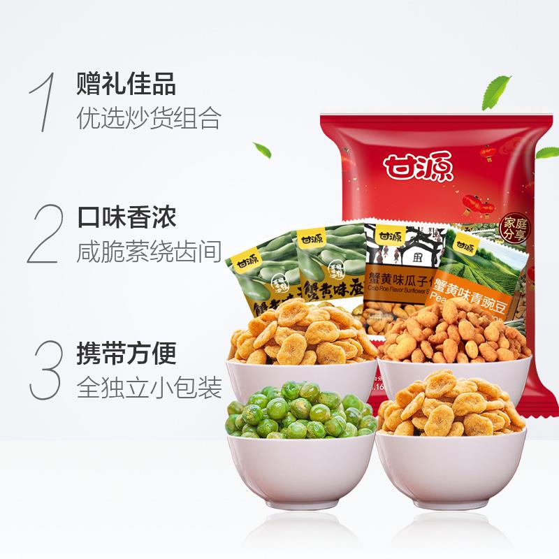 零食特产、酒水饮料 > 坚果炒货 > 甘源蟹黄味蚕豆青豆瓜子1168g休闲零食小吃零食礼袋礼盒独立小包