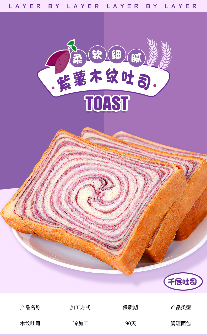• 商品名称:紫薯木纹吐司面包整箱抗饿...