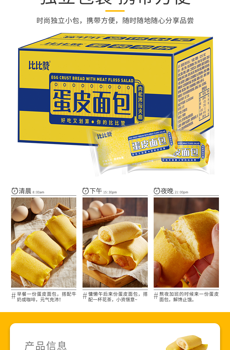 零食特产、酒水饮料 > 面包 > 比比赞蛋皮肉松面包整箱夹心早餐营养学生休闲零食品小吃充饥夜宵