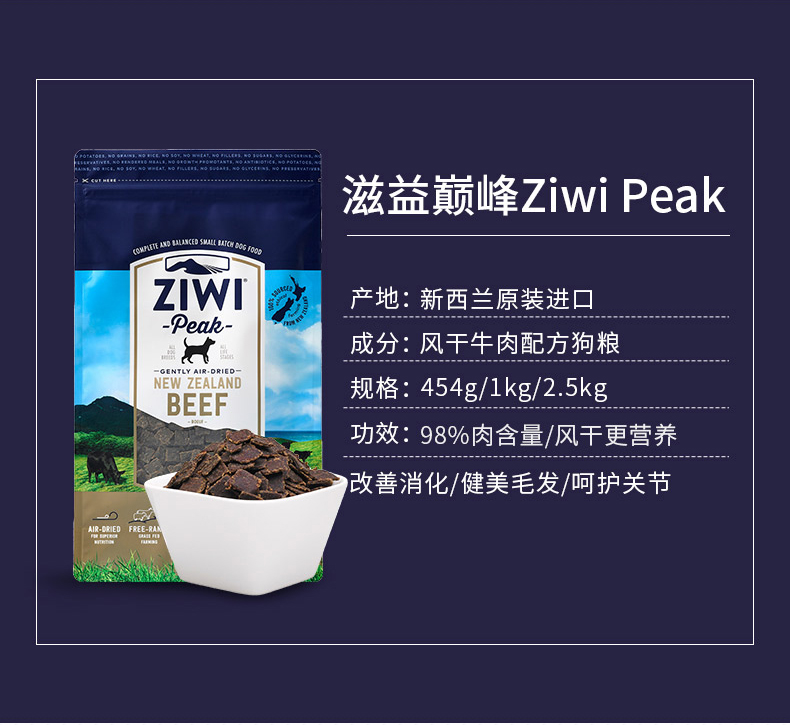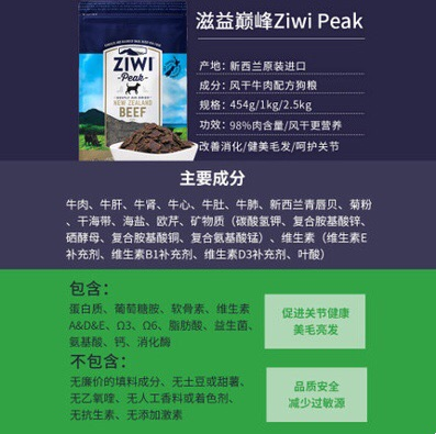 零食特产、酒水饮料 > 熟食 > 滋益巅峰 天然风干牛肉1kg 通用型 新西兰进口狗粮