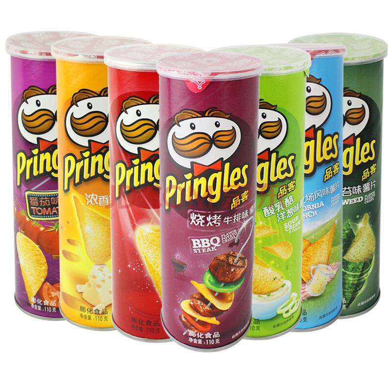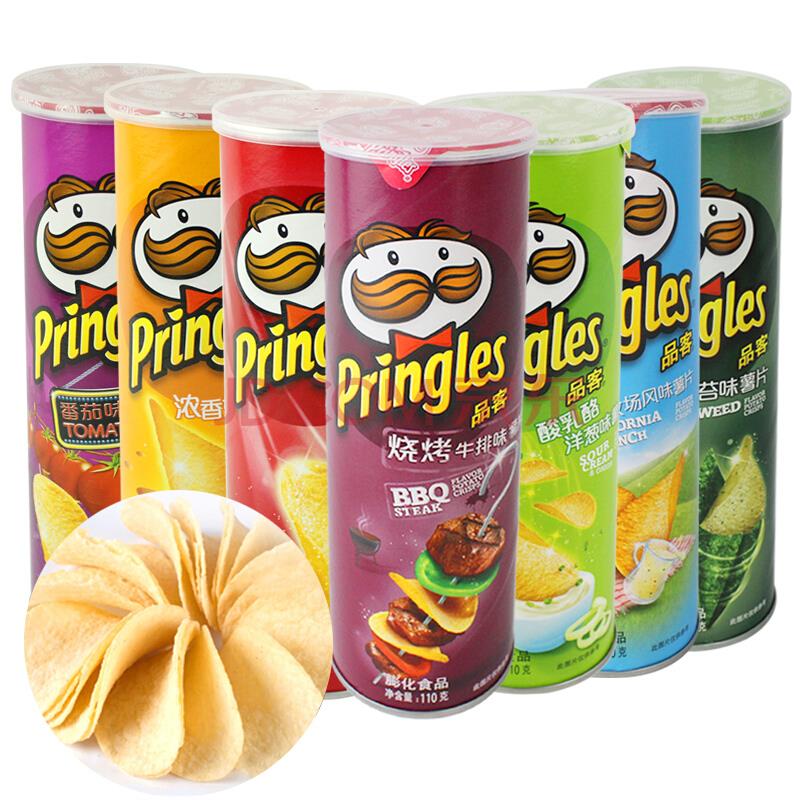零食特产、酒水饮料 > 坚果炒货 > 玉叶金花 品客薯片110g罐装X6罐多种口味大胡子土豆片 休闲零食 酸乳酪洋葱味x6