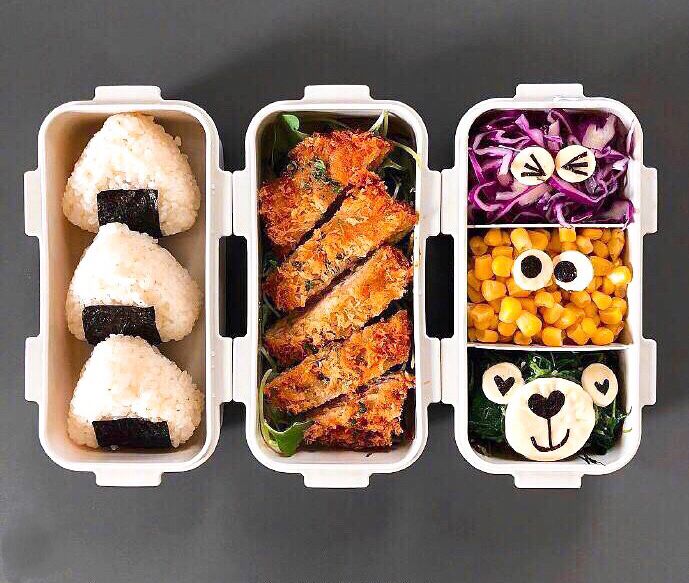香嫩的炸猪排,配上三种蔬菜,营养搭配perfect!口感软糯的米饭,在舌尖融化~绝对是懒人在家的标配
