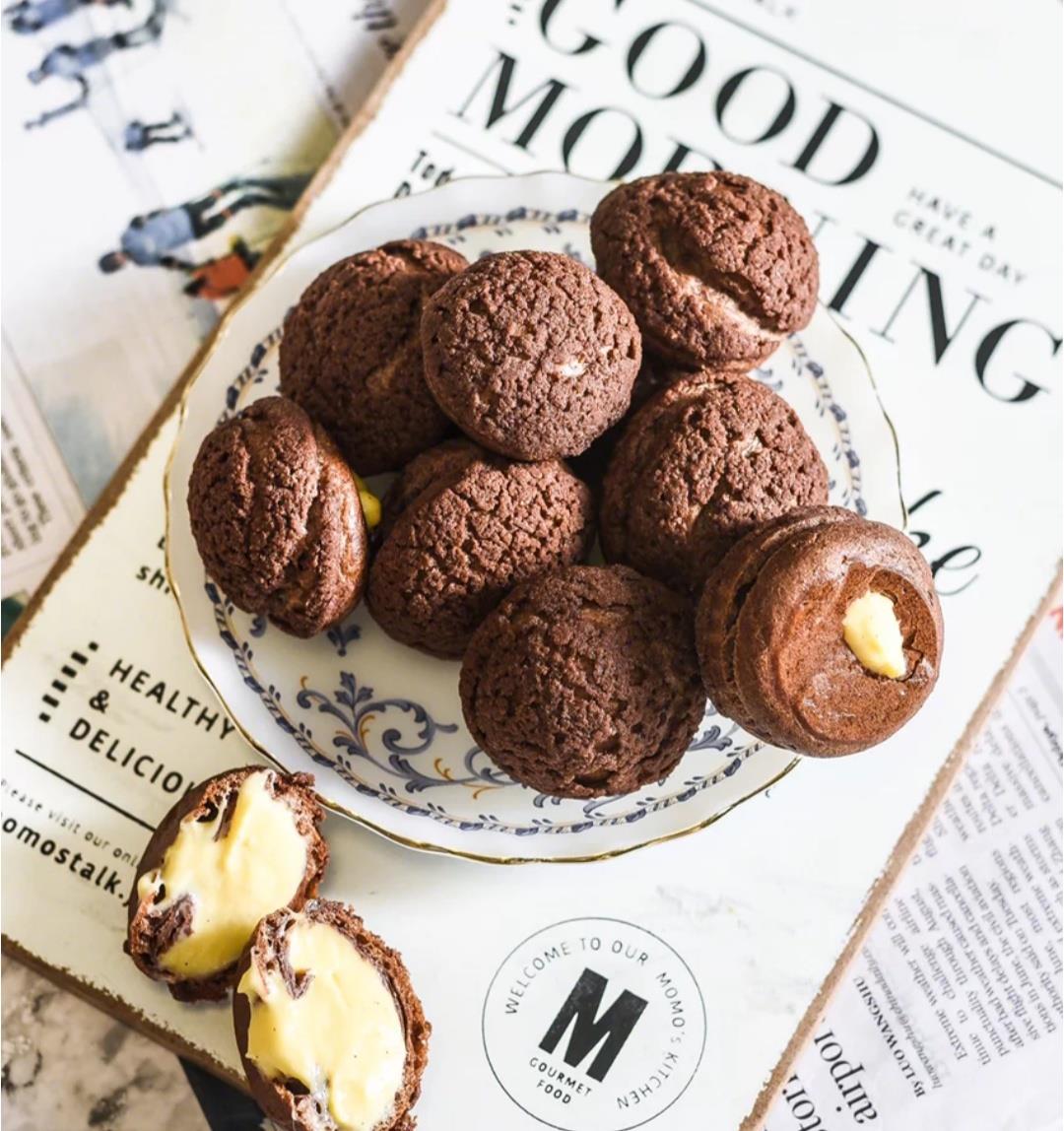 有人说,因为汉密哈顿奶油和汉密哈顿蛋糕走进了婚礼的殿堂,所以有了汉密哈顿奶油蛋糕。而深爱着汉密哈顿奶油的面包只能把爱埋在心里,变成了一只之泡芙。当你咬下第一口,你就会爱上它。如果我们再撒上醇香的可可粉,你会不会更爱它?每一个巧克力泡芙都经过精心选料、制作和烘焙,只为了给予你捧在手心里的那一份甜蜜。酥脆的外表下,隐藏着满满的快要溢出来的甜蜜心事,轻轻咬下一口,唇齿间都萦绕着可可的清香,清凉细腻的奶油融化在舌尖,和可可粉的微苦缠绵成少女的希冀,你会爱我的,会的吧,一定会的吧,请一定一定,要永远永远地,爱我呀。