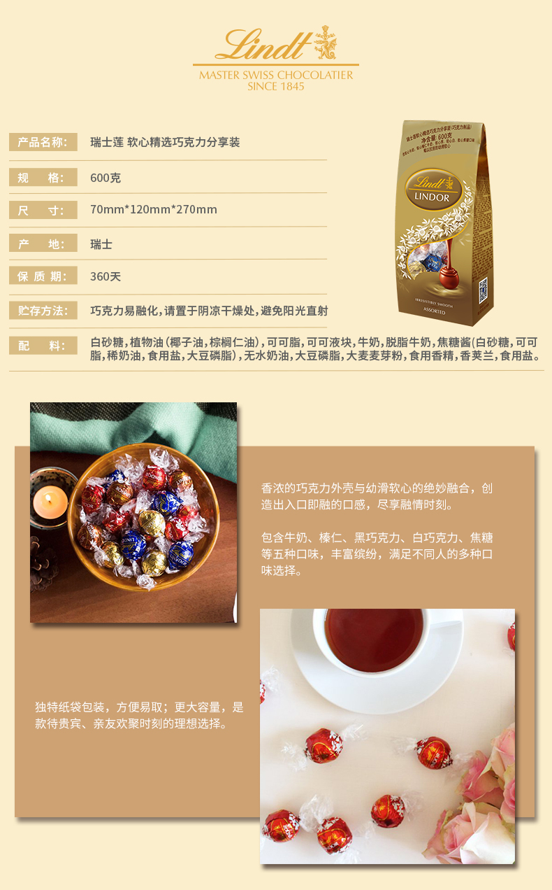 • 商品名称:瑞士莲瑞士进口软心精选巧...
