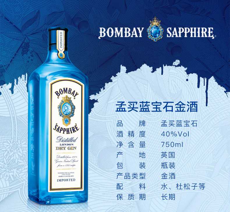 • 商品名称:孟买蓝宝石金酒BOMBAY杜松...