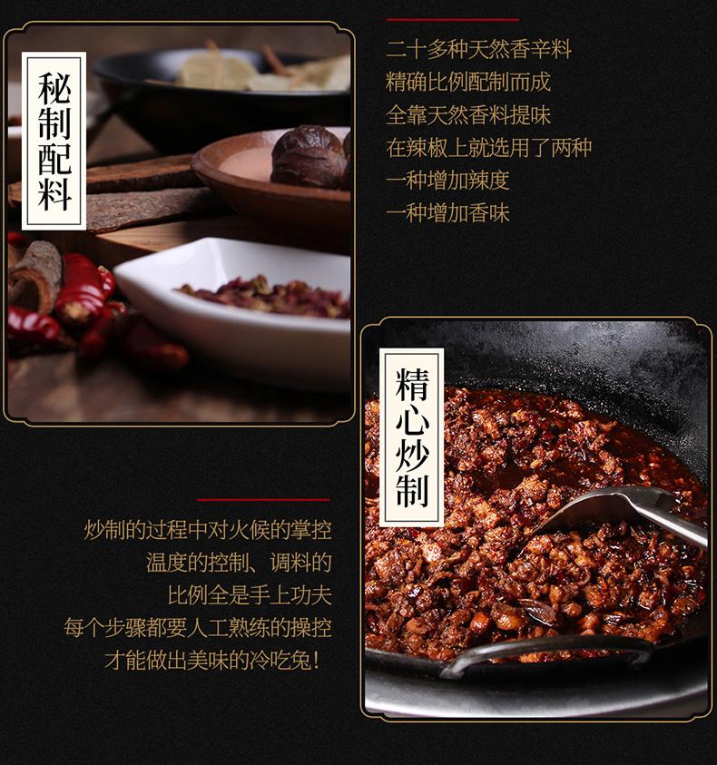 二十多种天然香辛料,精确比例调配而成,全靠天然香料提味。三种辣椒,一种增加辣度,一种增加香味,一种增加鲜度。