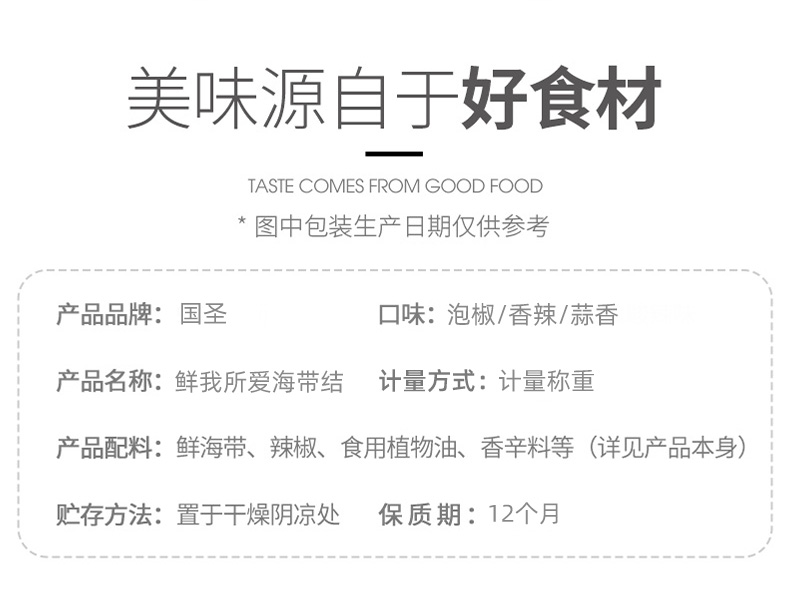 • 商品名称:国圣海带结500g即食袋装香...