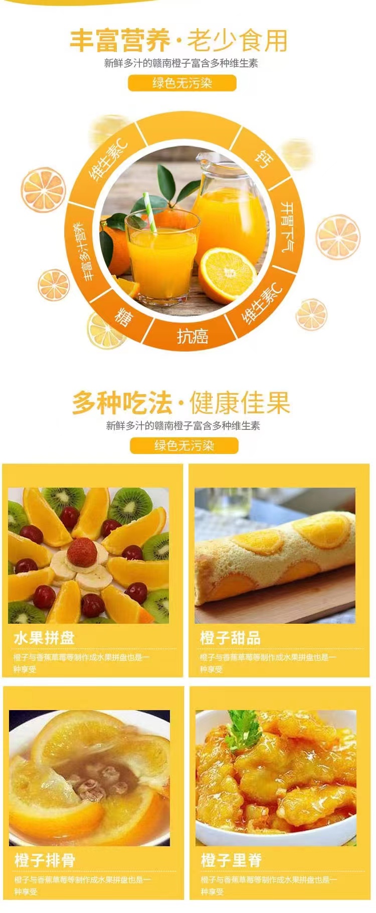 赣南脐橙含果汁55%以上,可溶性固形物含量14%以上,最高可达16%,含糖10.5%~12%,含酸0.8~