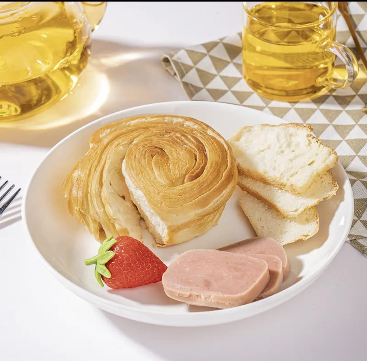 精选品质原料,浓醇蛋奶香,层层折叠起酥,低温二次发酵,酥软不干噎,0反式脂肪酸更安心,双重质检,严格把控品质,可以当早饭的手撕面包