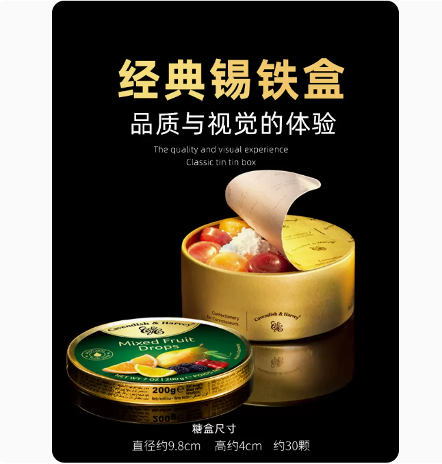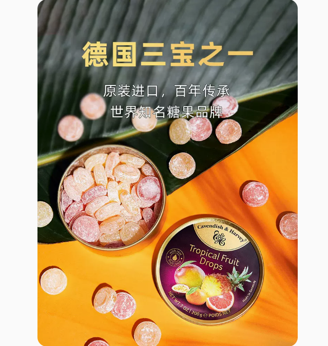零食特产、酒水饮料 > 糖果 > 德国进口嘉云糖200g混合水果味铁盒水果糖薄荷硬糖果零食礼盒罐装