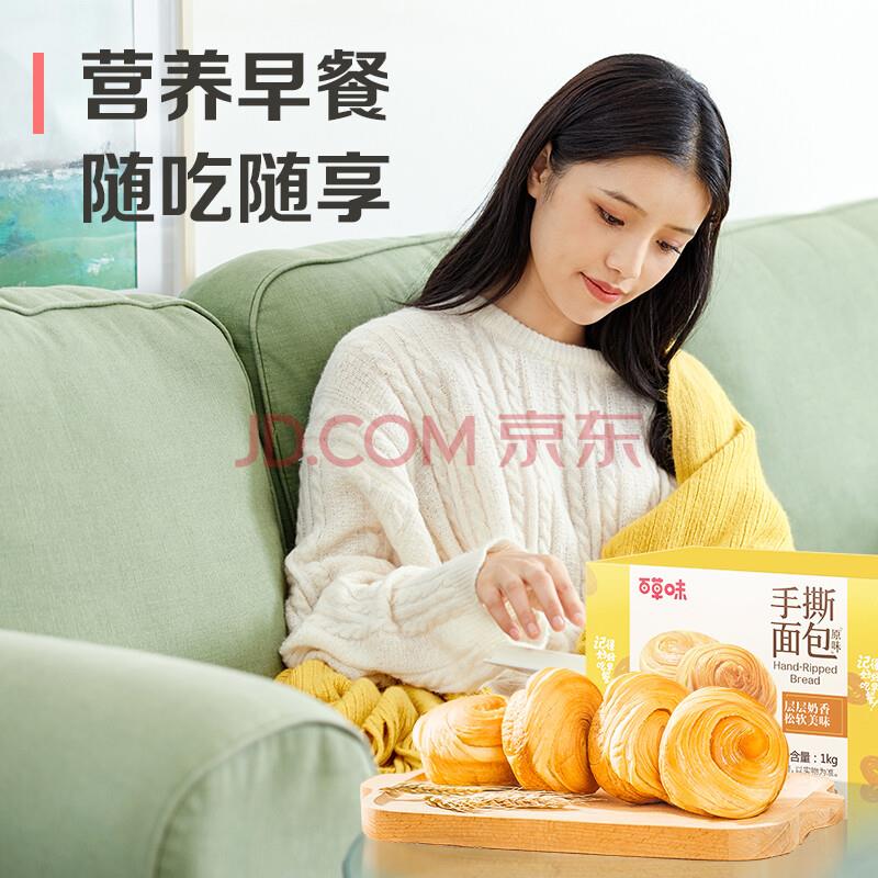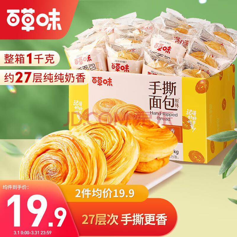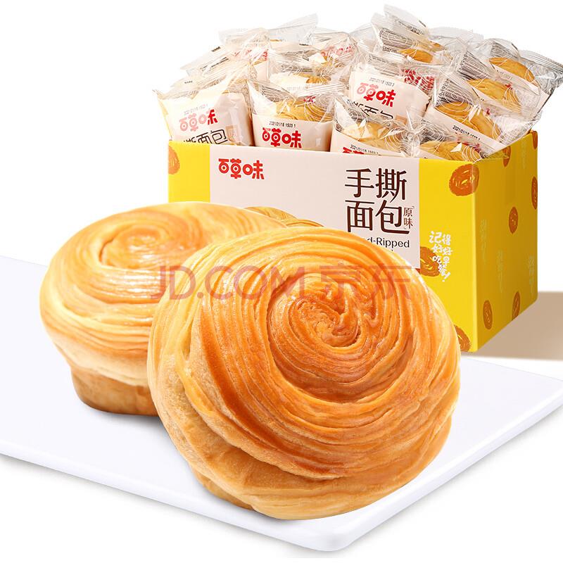 零食特产、酒水饮料 > 面包 > 百草味手撕面包1000g/箱早餐小面包代餐整箱量贩休闲食品办公室零食