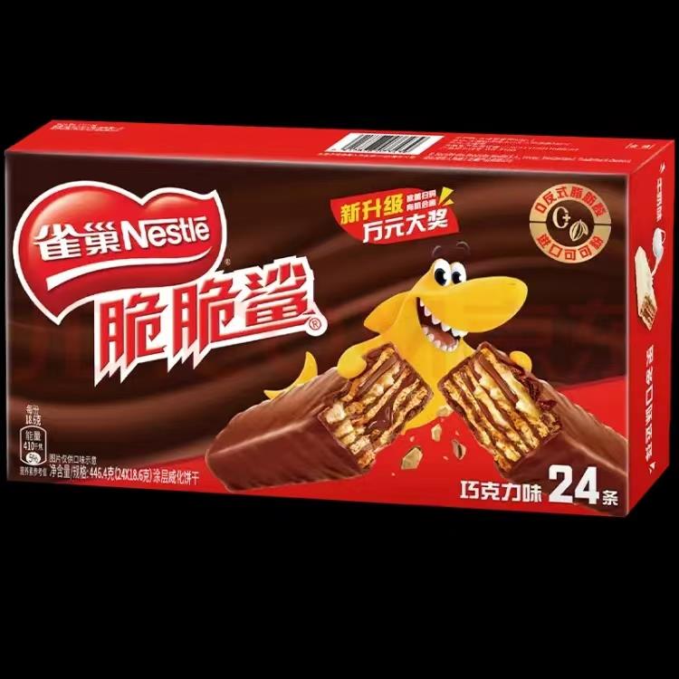 配料:小麦粉,巧克力味调味酱(白砂糖,植物起酥油(非氢化),可可粉,乳粉,乳清粉,固体玉米糖浆,磷脂,食用香精,食用盐,聚甘油蓖麻醇酸酯),白砂糖,植物起酥油(非氢化),麦芽糊精,可可粉,食品添加剂(碳酸氢钠,磷脂,碳酸钙),食用盐,乳粉,食用葡萄糖,乳清粉,牛奶巧克力,黑巧克力,食用香精,固体玉米糖浆。