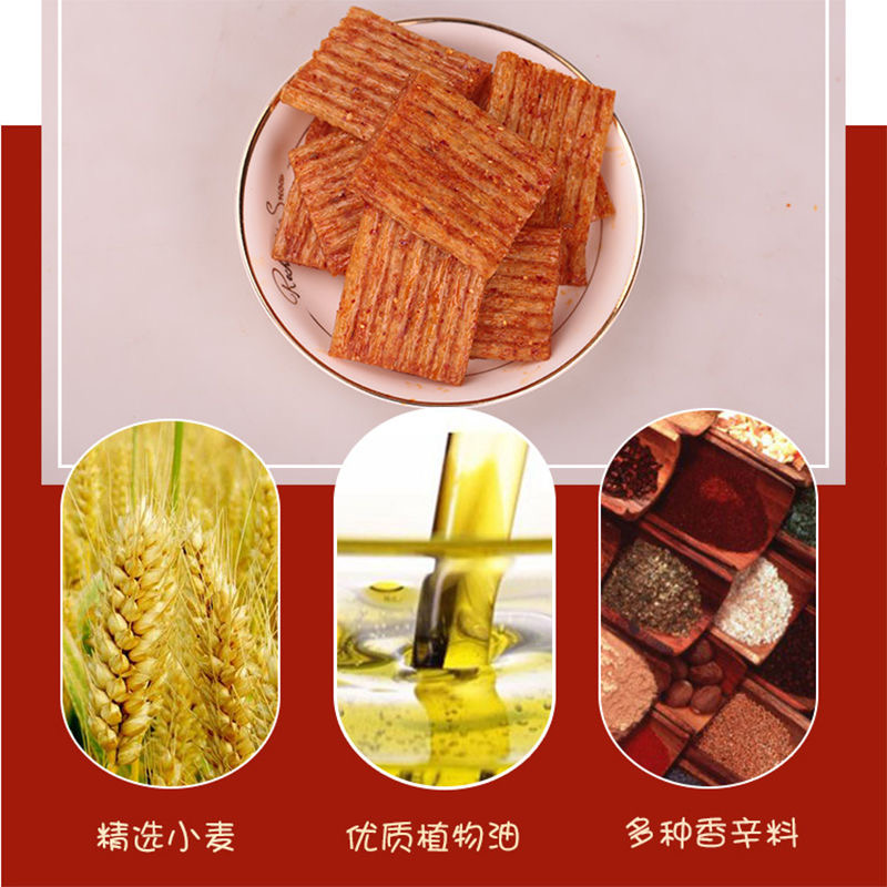 劲:每一片辣条都是传统工艺制作而成,自然劲道有味,回味无穷