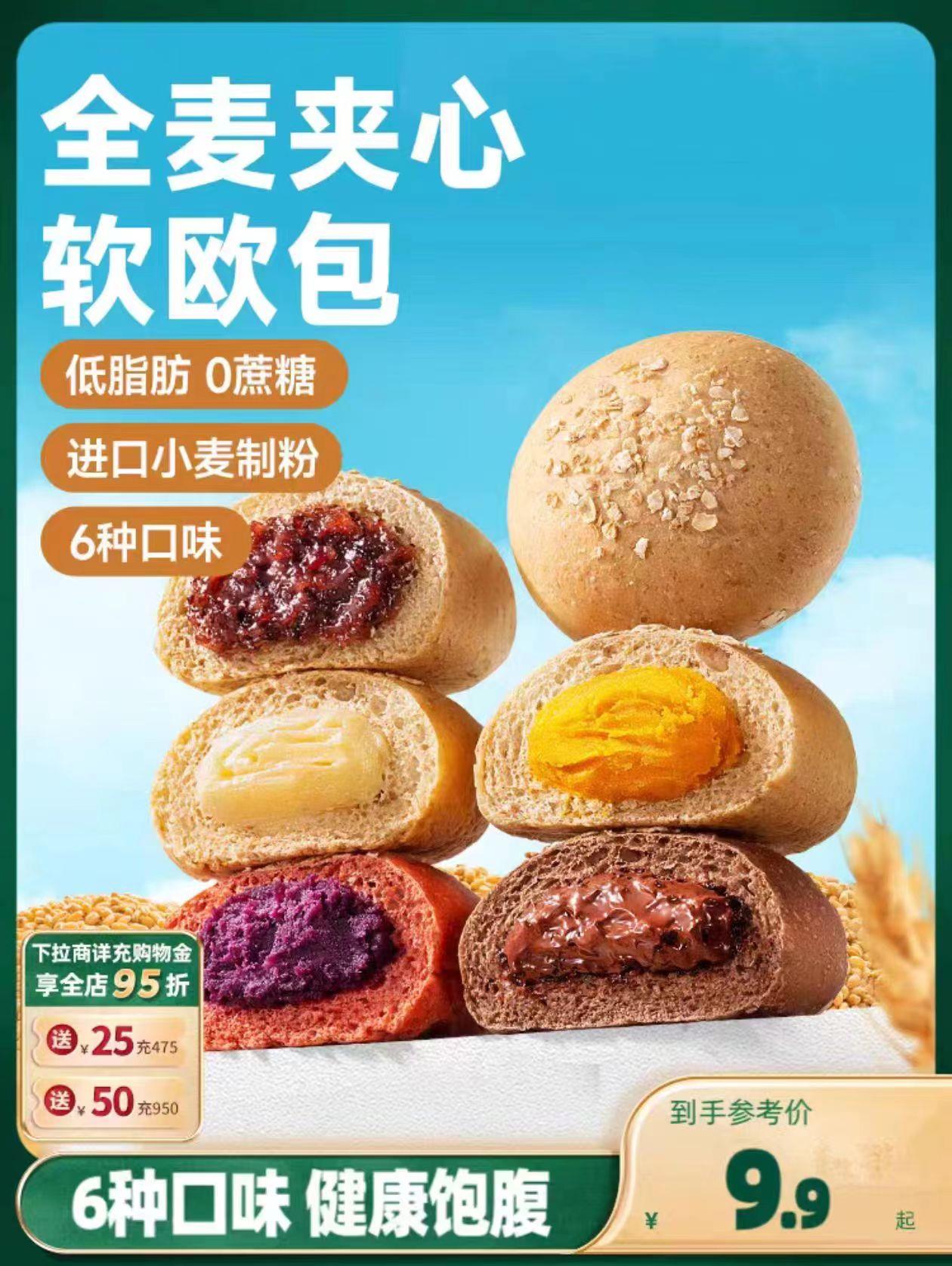 三只花栗鼠全麦欧包1000g低脂0蔗糖粗粮夹心面包代餐零食早餐。