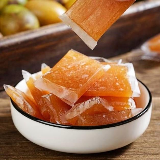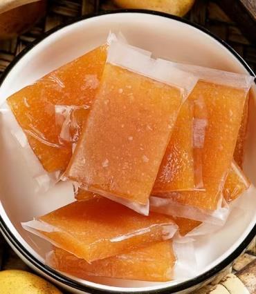 肉质柔润,酸甜适口,色如琥珀,酸甜韧滑,独立包装,随享美味