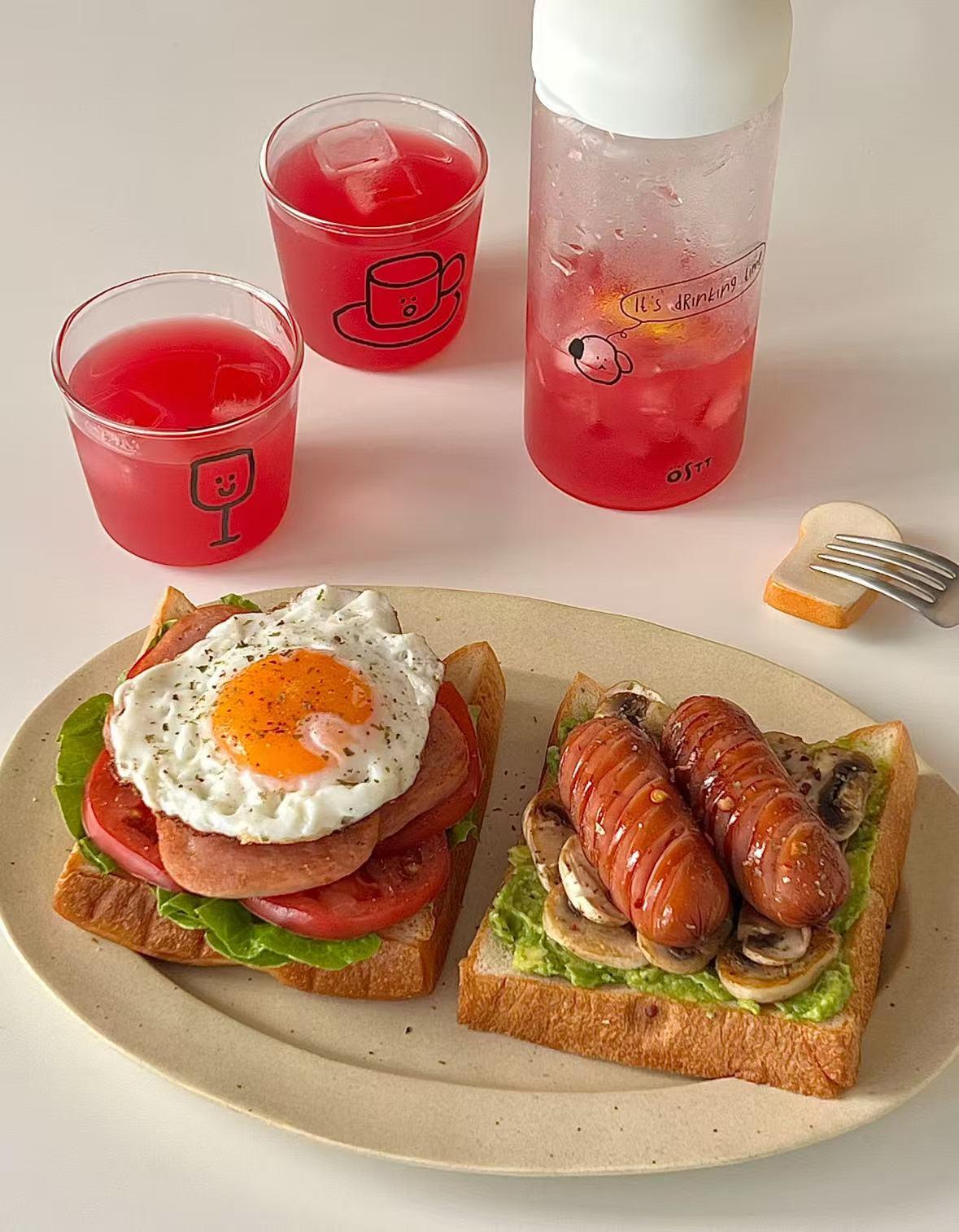 热狗,口蘑,午餐肉,煎蛋,生菜,吐司