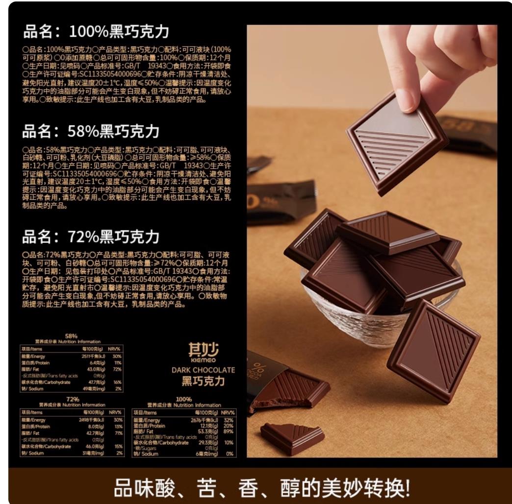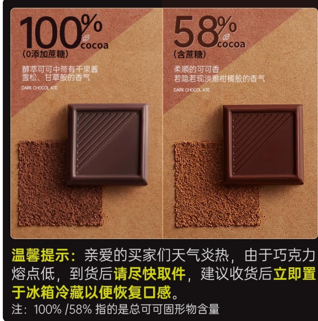 【共25包】58%可可-甜苦适中【实惠尝鲜】100g/盒】 【共25包】72%可可-偏苦【推荐】100g/盒】仅9.9 【共25包】100%可可-逆天苦【无添加蔗糖】100g/盒 【共50包】100%可可100g+送100g【买4送1盒】仅16.8 【共50包】72%可可100g+送100g【买4盒送1盒】仅16.8 【共50包】72%100g+送100%100g【买4盒送1盒】仅16.8 【共50包】58%可可100g+送100g【买4盒送1盒】仅15.8 【共50包】58%可可100g+送72%100g【买4盒送1盒】仅15.8 【共50包】58%100g+送100%100g【买4盒送1盒】仅16.8 新口味【共25包】40%可可-白巧克力100g/盒】仅10.99 【共25包】100%可可-逆天苦【无添加蔗糖】100g/盒】仅10.9 新口味【开心果味】72%可可-迪拜风味巧克力65g/盒 新口味【开心果味】58%可可-迪拜风味巧克力65g/盒 【共25包】58%可可-甜苦适中【实惠尝鲜】100g/盒 】 【共50包】58%可可100g+送72%100g【买4盒送1盒】 仅15.8