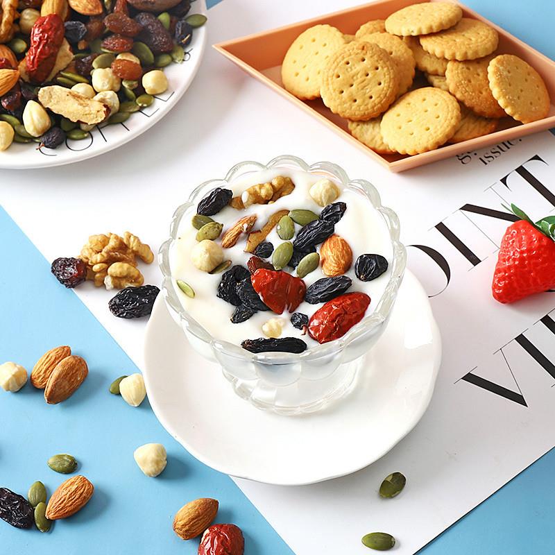 原料和配料核桃仁 扁桃仁 榛子仁 腰果仁 南瓜仁 黑加仑 蔓越莓 红提干 红枣条