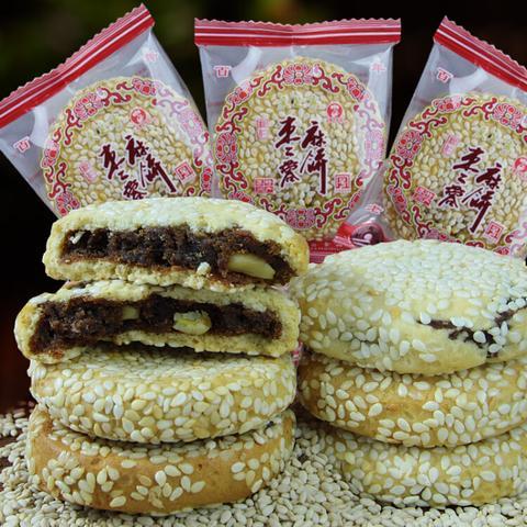 苏式麻饼是苏州的传统名点,以下是关于它的介绍: 历史渊源:苏式麻饼历史悠久,最早可追溯到一千多年前的唐朝。 制作工艺 - 饼皮制作:将特制粉与熟猪油、饴糖、食碱、碳酸氢钠等混合,加入适量沸水溶解后的溶液,搅拌均匀制成浆皮面团。 - 馅料制作:以黑枣肉、赤豆等为原料,将赤豆煮烂后连豆皮粉碎、滤干水分,再与砂糖熬煮、焙炒制成糖豆沙;将黑枣肉蒸透绞细,与砂糖、熟猪油焙炒制成糖枣泥。再加入糖渍板油丁、松子仁、糖桂花、芝麻仁等混合而成。 - 包馅成型:采用借皮包馅法或分别包馅法将馅料包入饼皮中,搓成圆形饼坯,然后放入上麻盘内,洒上适量冷水,使芝麻仁潮润,开启上麻机给饼坯两面沾上芝麻。 - 烘焙出锅:将饼坯排入烤盘,放入炉温约300℃的烤箱中,烘烤约5分钟,待饼身呈金黄色即可。 - 口味特点:苏式麻饼外形圆整,色泽金黄或深黄色。皮薄馅多,皮松脆而不焦,馅软糯细腻。枣泥的醇厚香甜、豆沙的绵密、松子仁的清香、糖渍板油丁的油润相互交融,甜肥适中,甜而不腻,香气扑鼻。 - 文化意义:苏式麻饼不仅是一种美食,更是苏州地域文化的重要代表,承载着苏州的历史记忆和文化传承,见证了苏州的发展变迁,也是人们走亲访友、馈赠礼品的热门选择,传递着美好的祝福和情谊。