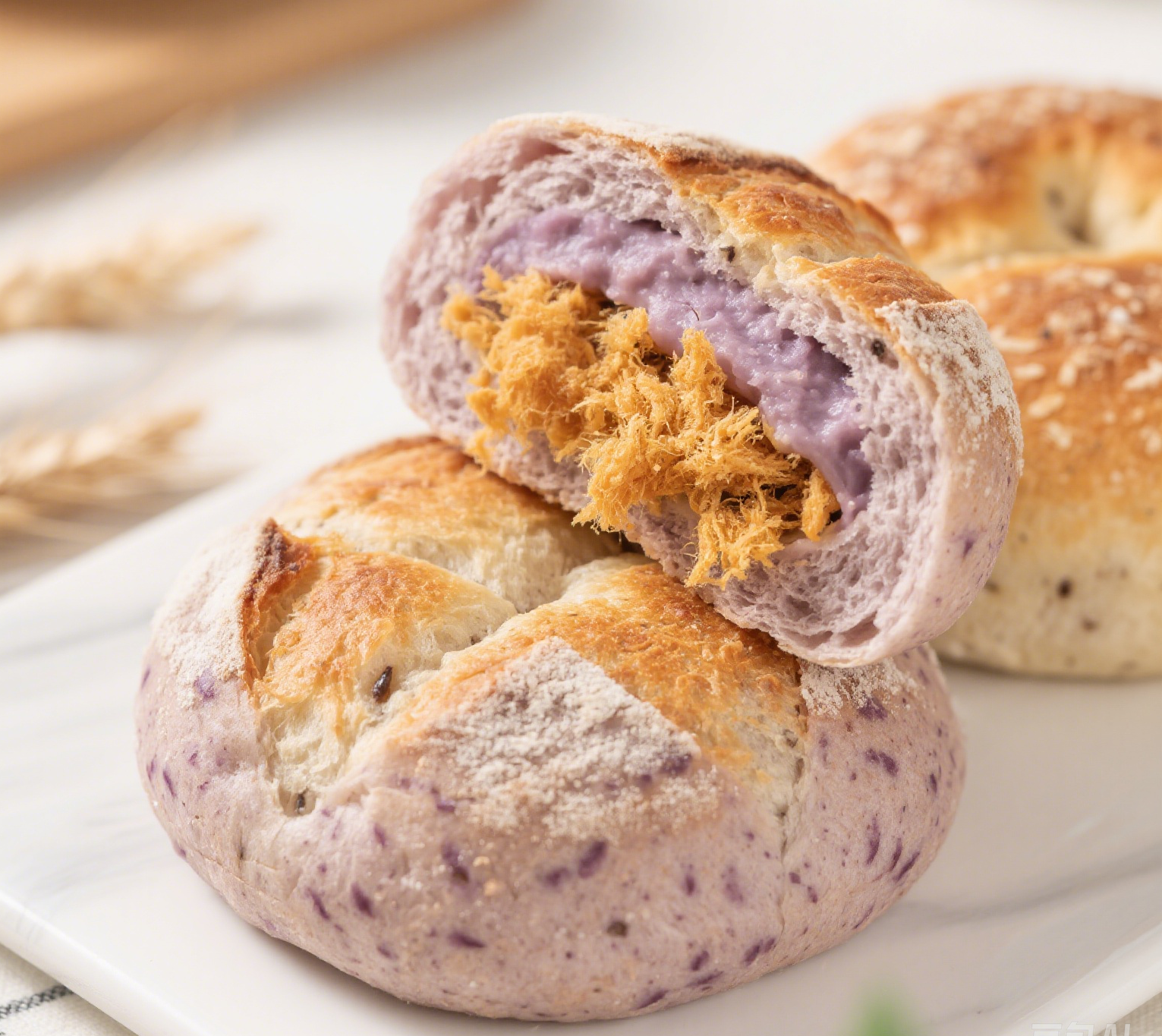 口感:外皮松软微韧,芋泥绵密香甜,肉松咸香酥脆,麻薯Q弹拉丝,低糖不腻,饱腹感强。