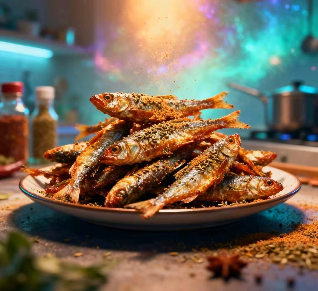 🌿 西域孜然:优质孜然粉均匀裹覆鱼干,香气醇厚不刺鼻,咸香中带着孜然的独特辛香;