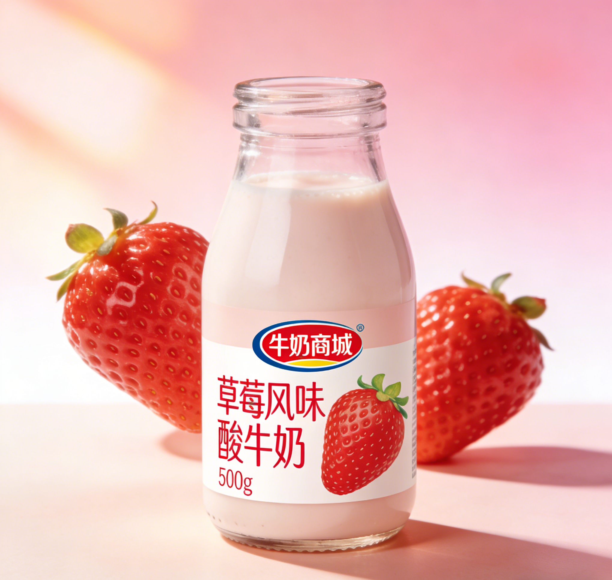 【果味发酵】添加真实草莓果酱,果香浓郁,酸甜适口;【活性菌群】每 100ml 含≥100 亿活性乳酸菌,呵护肠道健康;【低温锁鲜】2-6℃冷藏保存,保质期 21 天,确保产品新鲜度;【玻璃包装】透明玻璃瓶,可直观看到产品状态,环保可回收;【场景多元】早餐搭配、下午茶点、夜宵佐餐皆适宜。