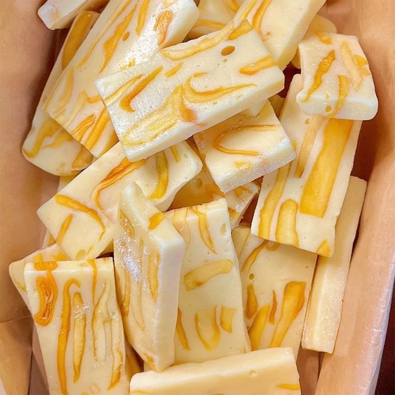 芒果草莓奶恋,一口一颗,奶香浓郁,鲜果干与软萌奶糕的结合,介于牛轧糖与棉花糖之间的口感,太美味了,健康配料,保留芒果/草莓与奶粉的本真味道。