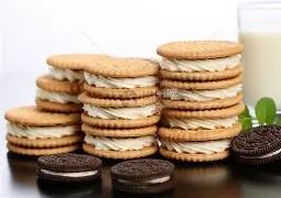 饼干,是以谷类粉为主要原料,添加糖、油脂及其他原料,经调粉(或调浆)、成型、烘烤(或煎烤)等工艺制成的食品,以及熟制前或熟制后在产品之间(或表面、或内部)添加奶油蛋白、可可、巧克力等的食品