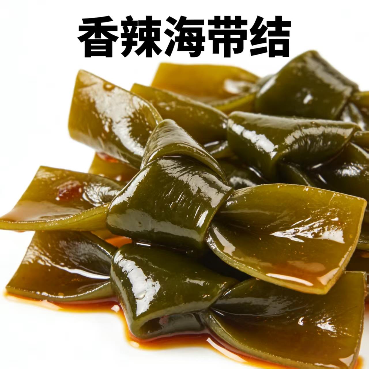 深海海带结,清洗去沙后卤制,香辣入味,口感厚实有嚼劲,低卡低脂,饱腹无负担,居家、出行的健康解馋小食。