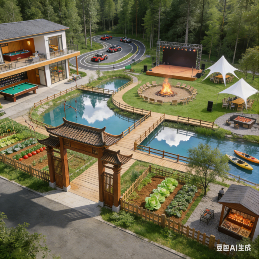全天主题团建:分小组完成 “农耕任务 + 趣味竞技”(如:蔬菜采摘竞速、卡丁车接力赛、皮划艇编队赛);