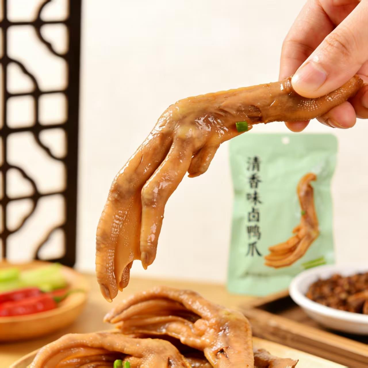 卤制理念:少盐轻调味,以老母鸡高汤为底,搭配香叶、陈皮等清淡香料,突出鸭爪本身的鲜香味;