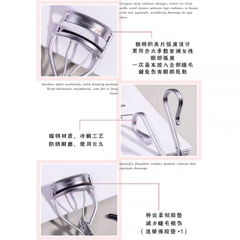 尔木萄睫毛夹的使用感非常好,独特的夹片弧度设计更符合大多数亚洲女性眼部弧度,碳钢材质、冷锻工艺,防锈耐磨、使用长久,还有特定柔韧胶垫,以减少睫毛损伤。