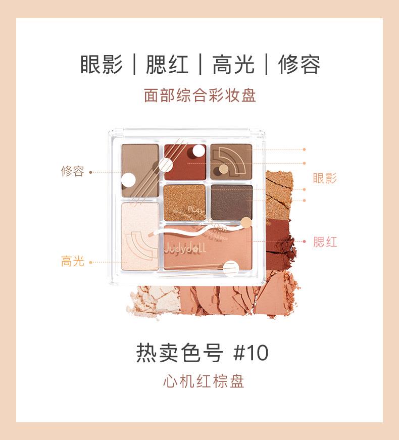 个人化妆、洗发沐浴 > 外貌 > Judydoll橘朵七巧板玩趣眼影盘彩妆腮红高光修容新手哑光珠光旗舰