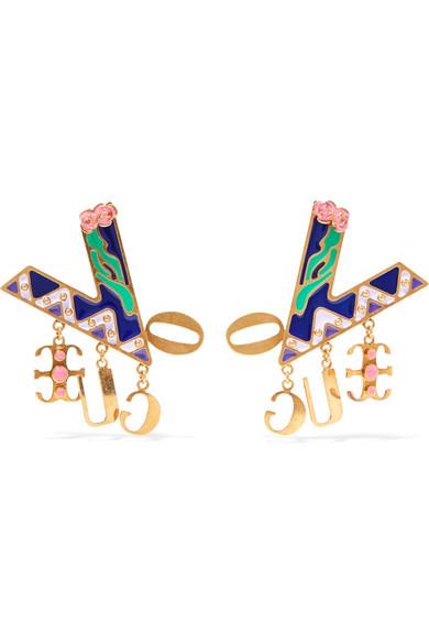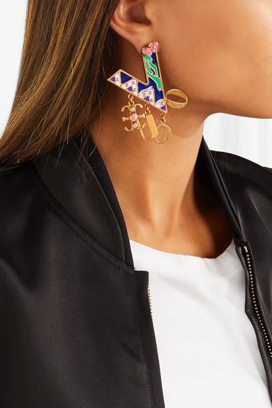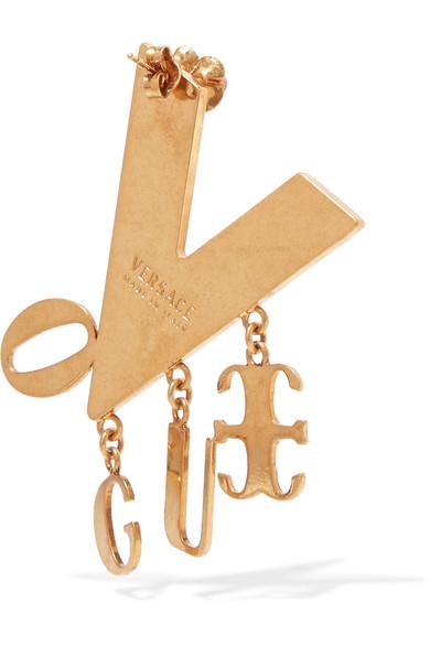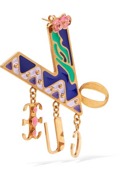 设计师 Donatella Versace 以 2018 春夏系列向她的哥哥、Versace 品牌创始人 Gianni 致敬。其中这款耳环采用抛光金色金属于意大利制成,覆有深浅不一的紫色、绿色和粉色搪瓷涂层,像极了 80 年代典藏设计中的“一员”。不妨搭配飞行员夹克,将单品的复古韵味延续到底。