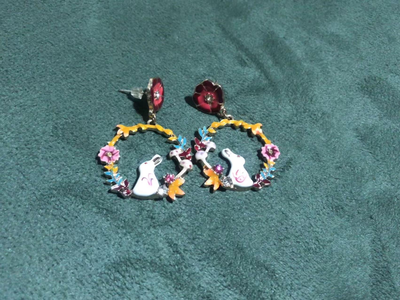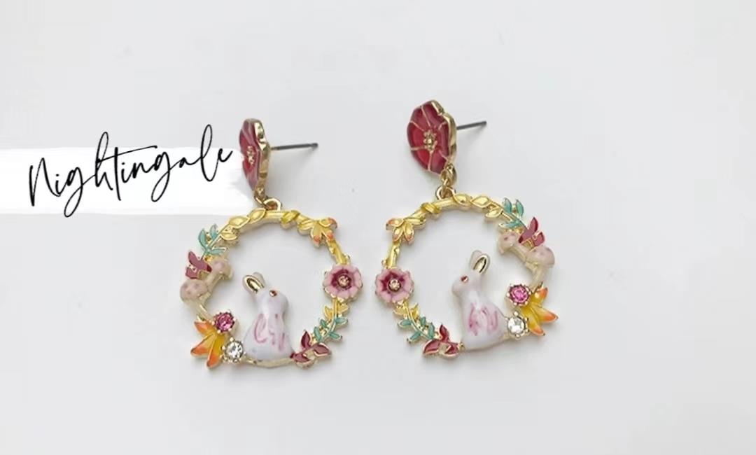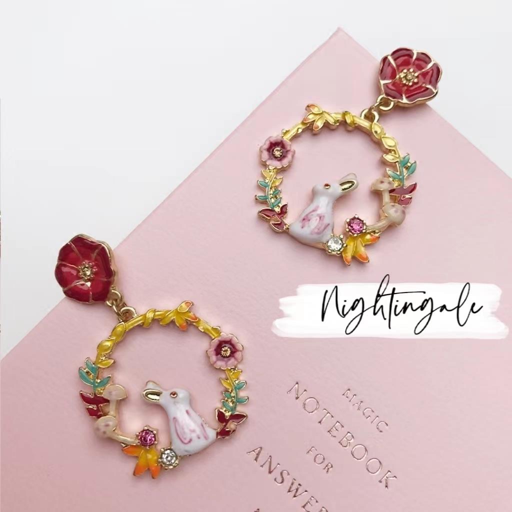 夜鶯Nightingale【田野精灵】法国风浪漫可爱文艺爱丽丝彩釉陶瓷手工小兔子花环耳钉耳坠耳勾