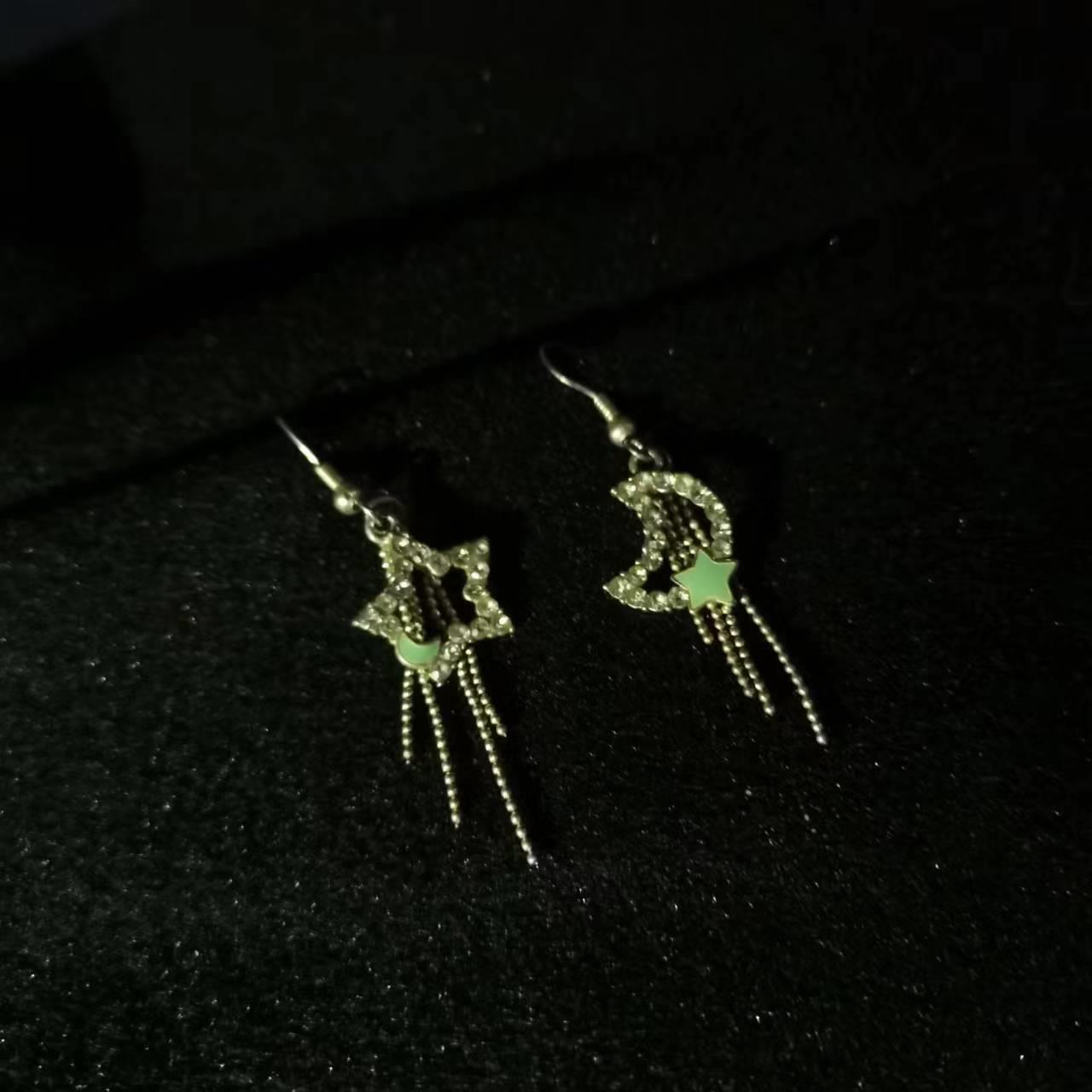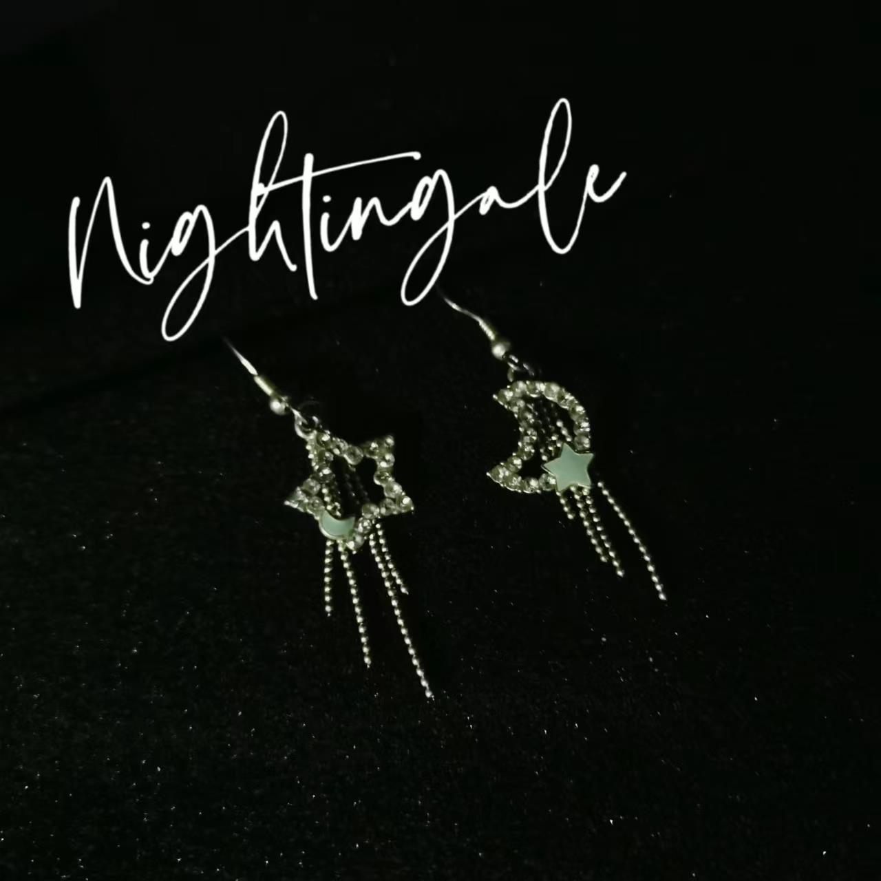 夜鶯Nightingale[月落星沉]微镶锆石星月流苏耳环女小众设计感耳钉耳饰精致小清新