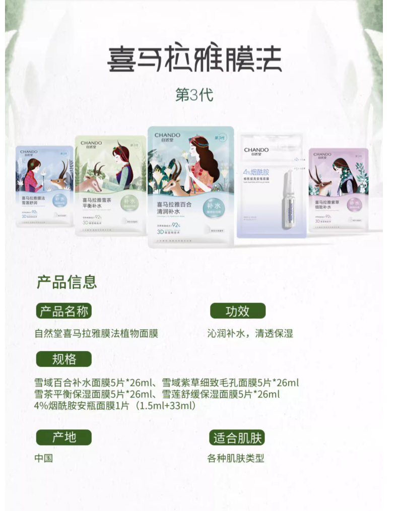 品牌:CHANDO/自然堂面膜单品:雪域紫草细致毛孔面膜产地:中国