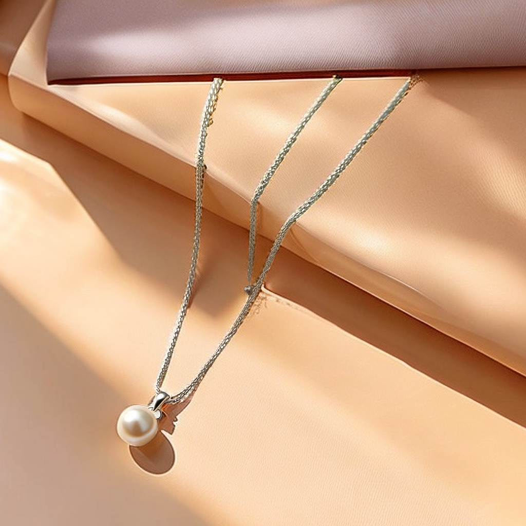 项链链体采用优质金属制成,简洁的线条设计既突显了珍珠的璀璨,以一颗独特的圆润珍珠为中心,散发着柔和而纯净的光泽。珍珠的每一面都经过精心打磨,以展现其天然的美丽。既适合日常佩戴,又能在特别场合中成为亮点。无论是搭配休闲装还是正式服装,这条项链都能轻松驾驭,增添一抹高雅气质。