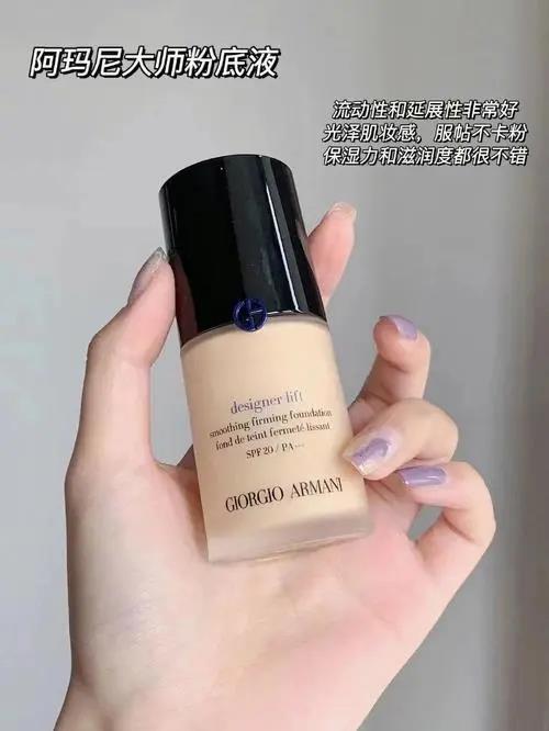 遮瑕持久:阿玛尼大师锁光粉底液不仅具有优秀的遮瑕效果,还能长时间保持妆容完好,不易脱妆,让你整日焕发光彩。