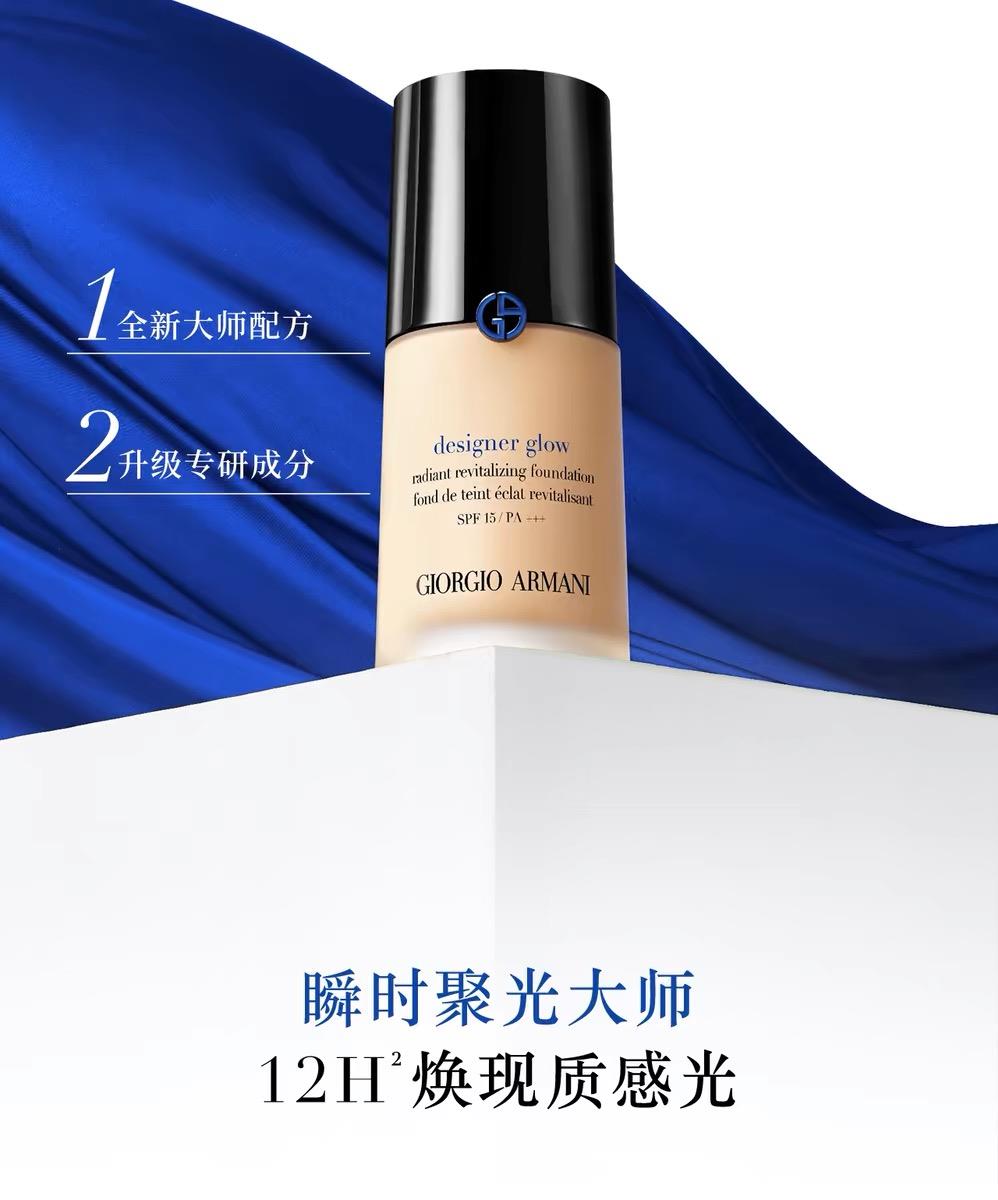 锁光精华:阿玛尼大师锁光粉底液蕴含独特锁光精华,能够反射光线、均匀肤色、提亮肌肤,让肤色看起来更加明亮透亮。