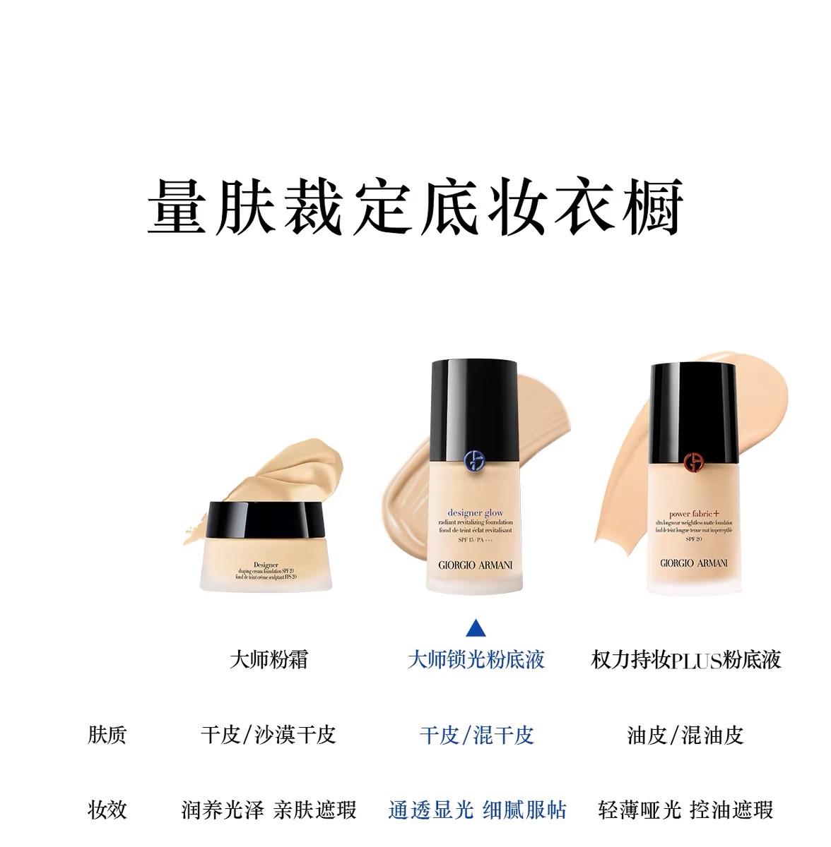 多色号选择:根据不同肤色和需求,阿玛尼大师锁光粉底液提供了多种色号选择,从自然裸妆到炫彩派对妆,应有尽有,满足不同场合的需求。