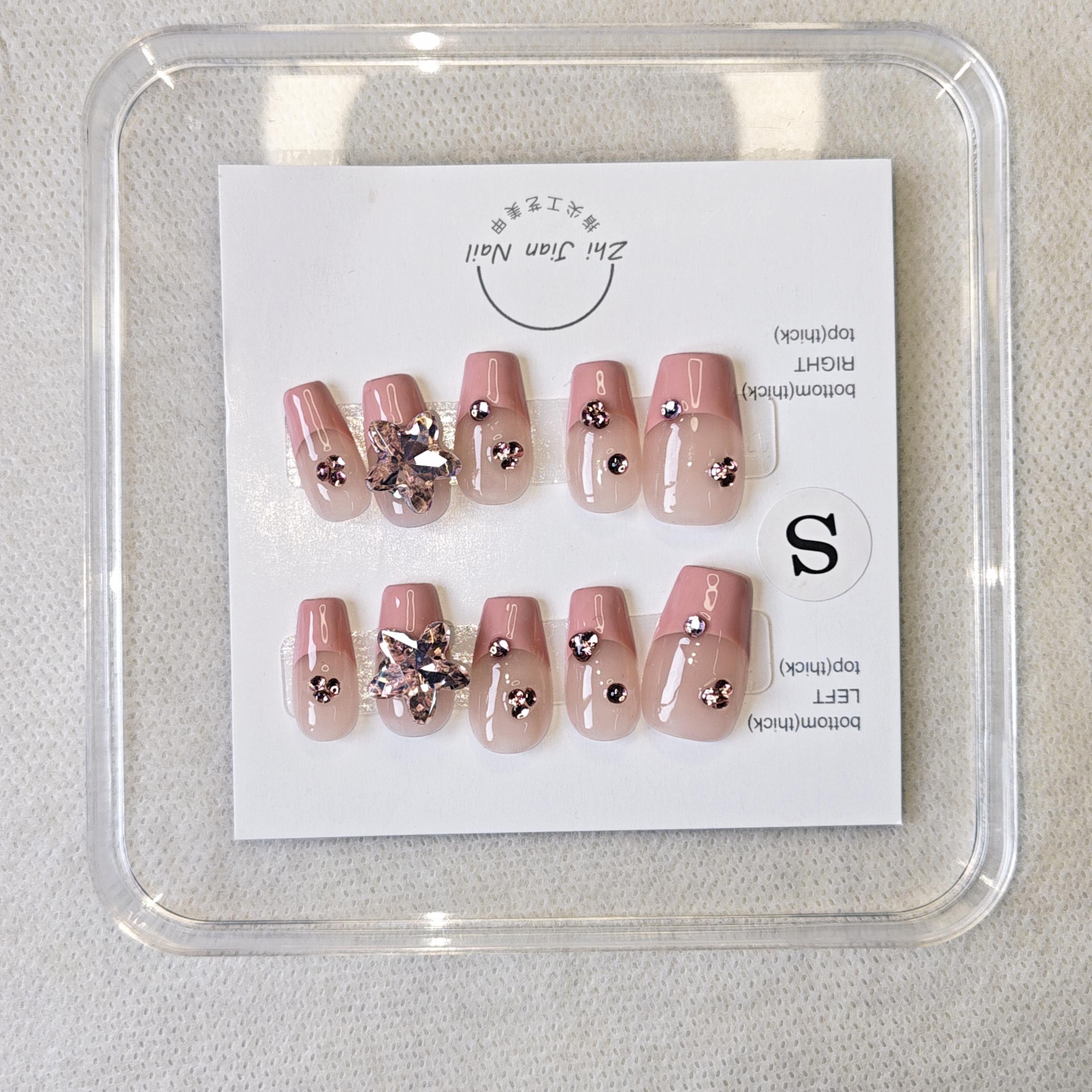 每一幅十片甲片都是经过甲片打磨、吻合剂、底胶、多层颜色甲油、胶底胶、饰品胶