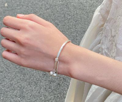 手镯整体工艺精湛,虽是素银类首饰,却尽显品质。其质地相对柔软,这也正是高纯度银的特性,佩戴起来贴合手腕,舒适感十足。手镯表面或许有着细腻的纹理,或许是光滑的触感,无论哪种,都展现出 LiH 物语对品质的执着追求 。无论是日常穿搭,为简约的服饰增添亮点;还是出席重要场合,与华丽的礼服相得益彰,它都能完美适配,成为你手腕间的独特风景。无论是送给自己,作为日常的贴心陪伴;还是馈赠亲友,传递满满的爱意与祝福,LiH 物语 S999 银 “一步一响” 轻奢灵动铃铛手镯,都是绝佳之选 。