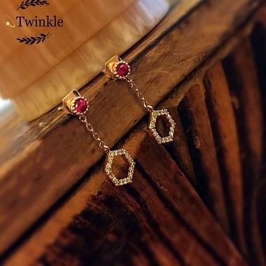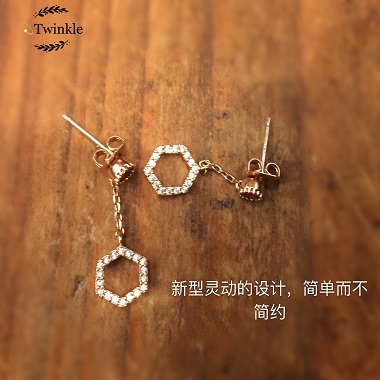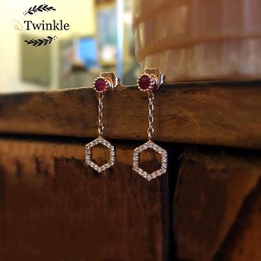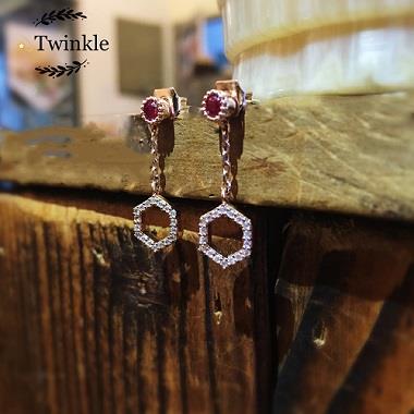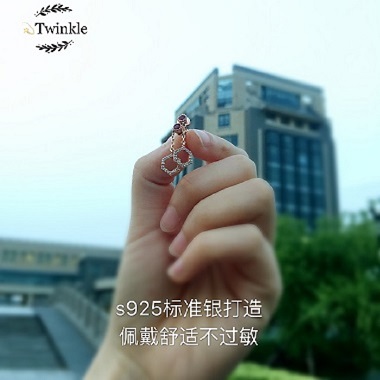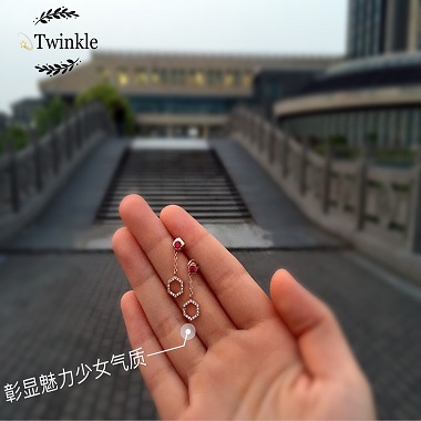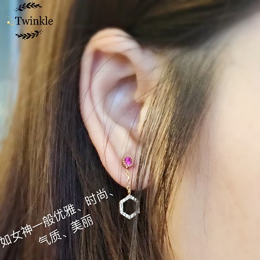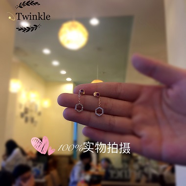 普通紫红耳钻搭上小金钻的几何环形,独特而优美