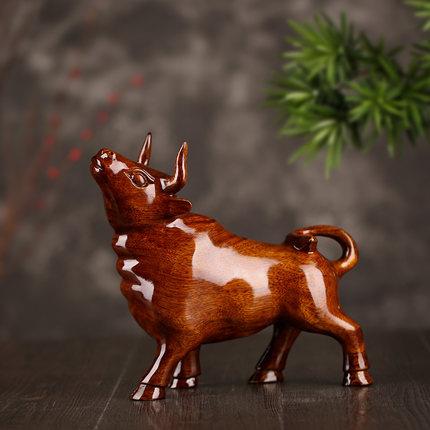 红木工艺品木质雕刻生肖牛红色牛摆件实木拓荒牛木雕摆件家居